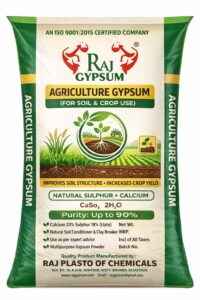 Raj Gypsum Agriculture Gypsum is a high-quality, natural soil conditioner specially formulated for agricultural use. Enriched with essential calcium and sulphur, it helps improve soil health, supports strong root development, and enhances overall crop productivity. Suitable for a wide range of crops, it plays an important role in maintaining long-term soil fertility.